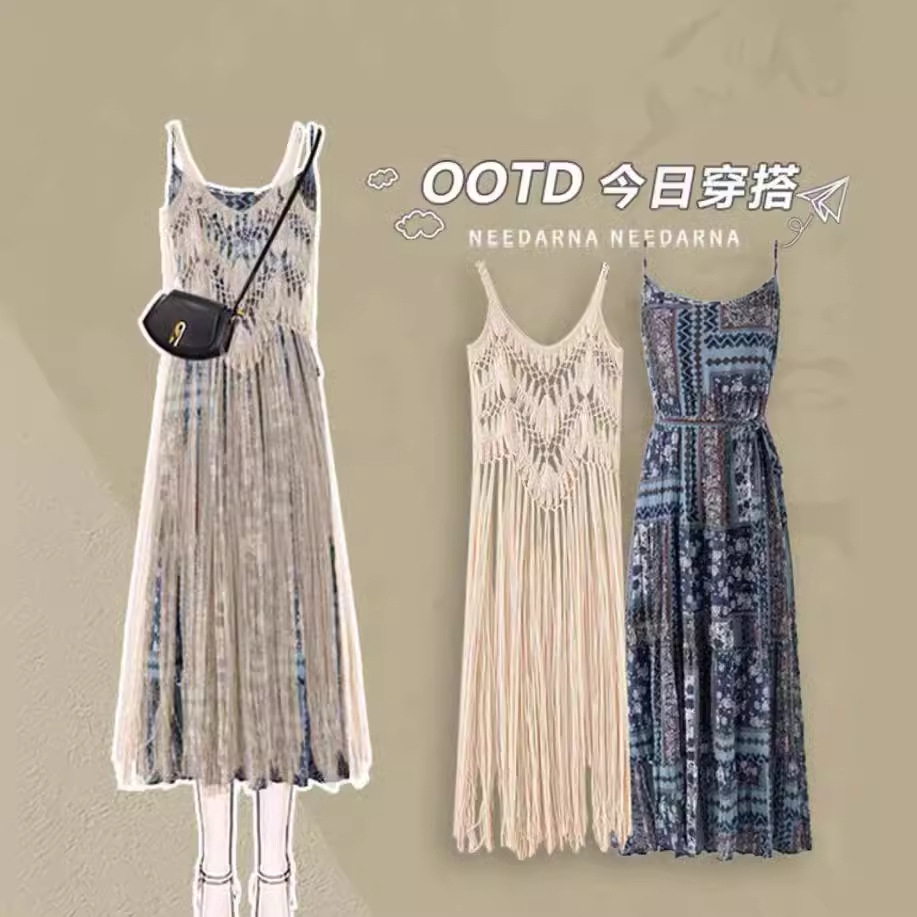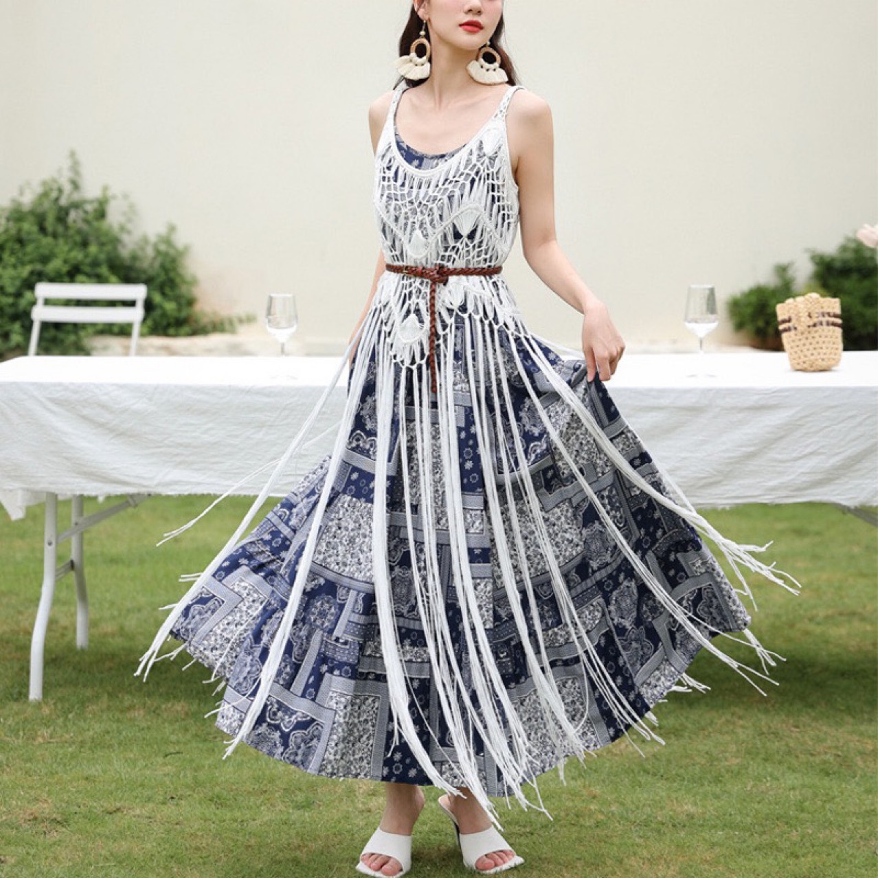 | nameOriginal | Vintage ethnic style knitted long tassel blouse hanging belt wear hollow beauty vest summer women's wholesale |
