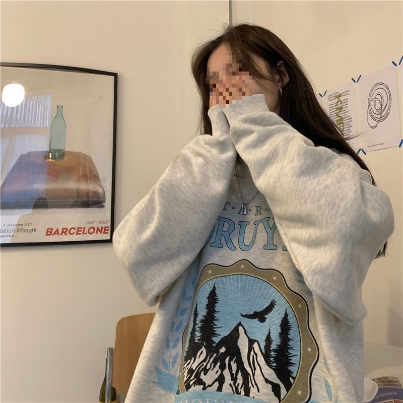 Vintage Hong Kong Style fleece-lined Sweat Women's New Autumn and Winter Loose Student White Style Ins Design Niche Top