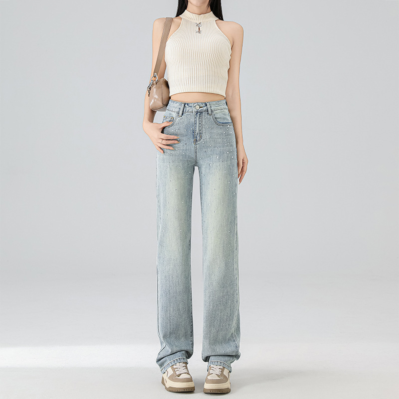 | nameOriginal | Vintage Narrow Wide Leg Pants Jeans Women's Summer Thin High Waist Slimming Beaded Design Sense Small Straight Pants |