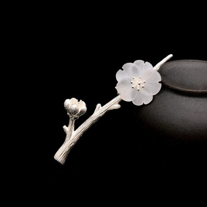 خمر قصر Guofeng كريستال زهر البرقوق دبوس كل مباراة جوهرة Hetian اليشم 925 فضة بروش المرأة ضوء الغلاف الجوي الفاخرة