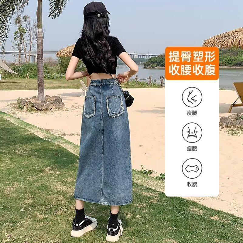 | nameOriginal | Vintage Split Denim Skirt Women's 2024 New Summer High Waist A- Line Skirt Loose Mid-Length Skirt |