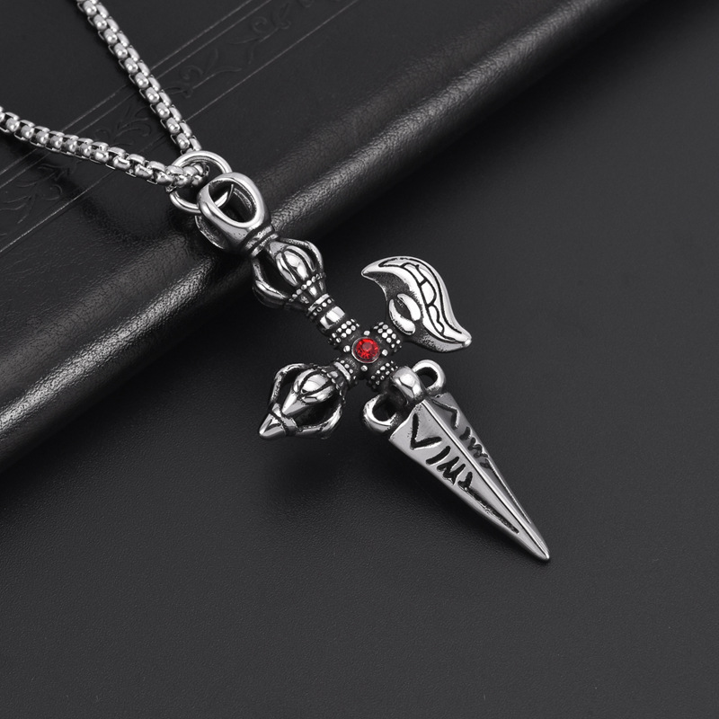 | nameOriginal | Vintage Stainless Steel Cross King Kong Xu Men's Pendant Creative Pendant with Red Diamond Punk Style Jewelry Famous Ethnic Style Pendant |