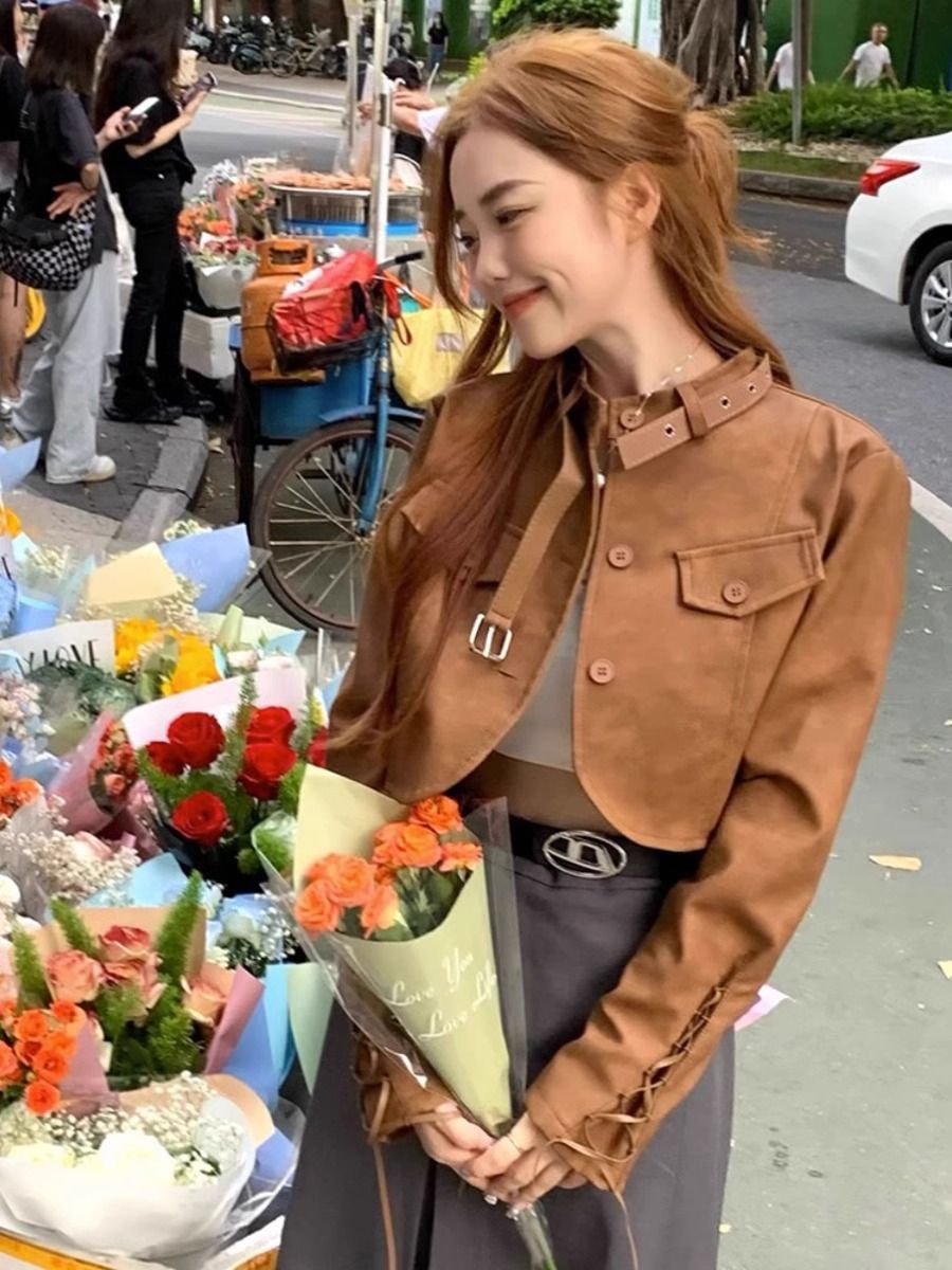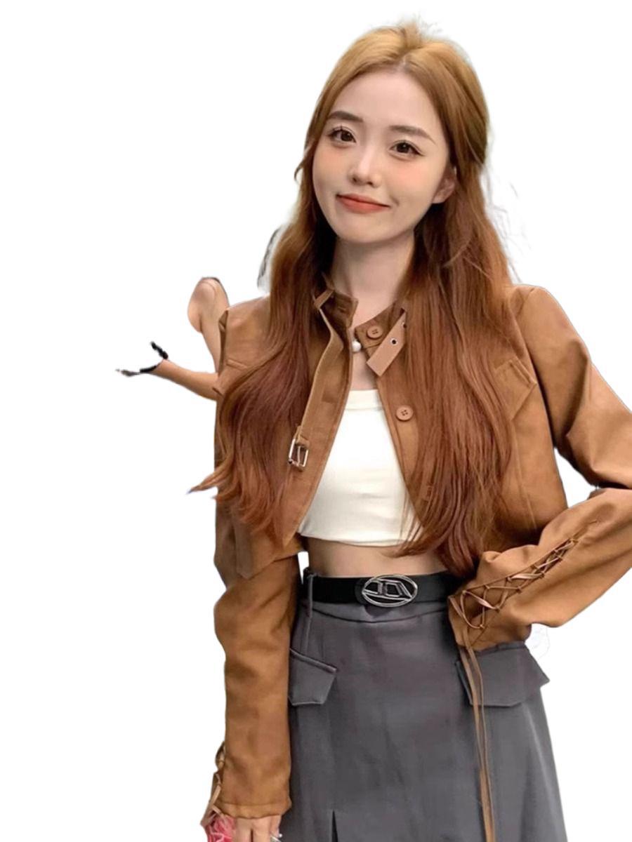 | nameOriginal | Vintage Sweet Cool Style Short Leather Jacket Women's Spring New Korean Style Slim-fit All-match Motorcycle Lace-up Leather Jacket Trendy |