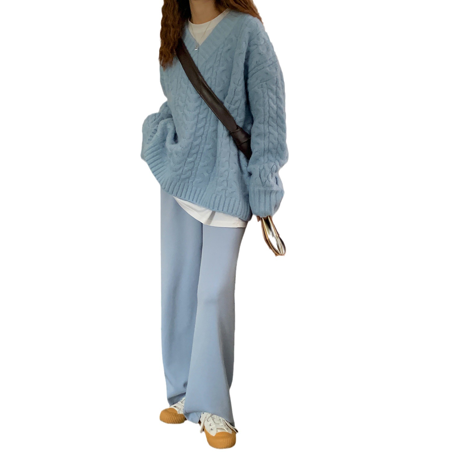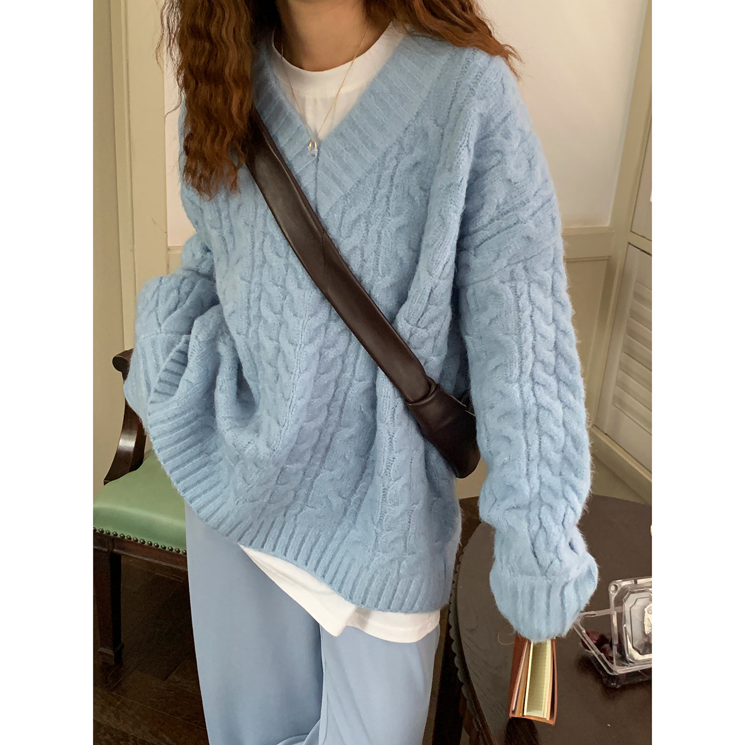 بلوفر تويست عتيق سترة نسائية للخريف والشتاء نمط كوري جديد فضفاض كسول عصري سميك محبوك سترة