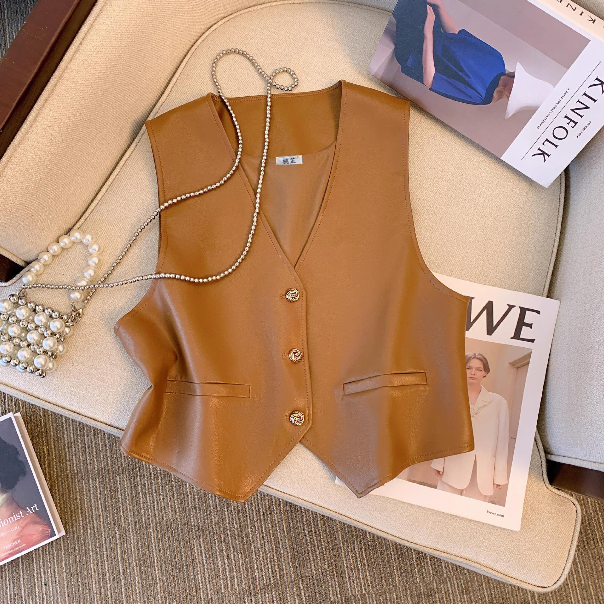 | nameOriginal | Vintage Vest Vest Spring Women's 2024 New Fashion Casual All-match pu Leather Jacket Vest camel |