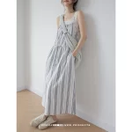 | nameOriginal | VNOOK yarn-dyed striped suspender dress flat collar straight loose loose slim 2024 summer new long skirt |