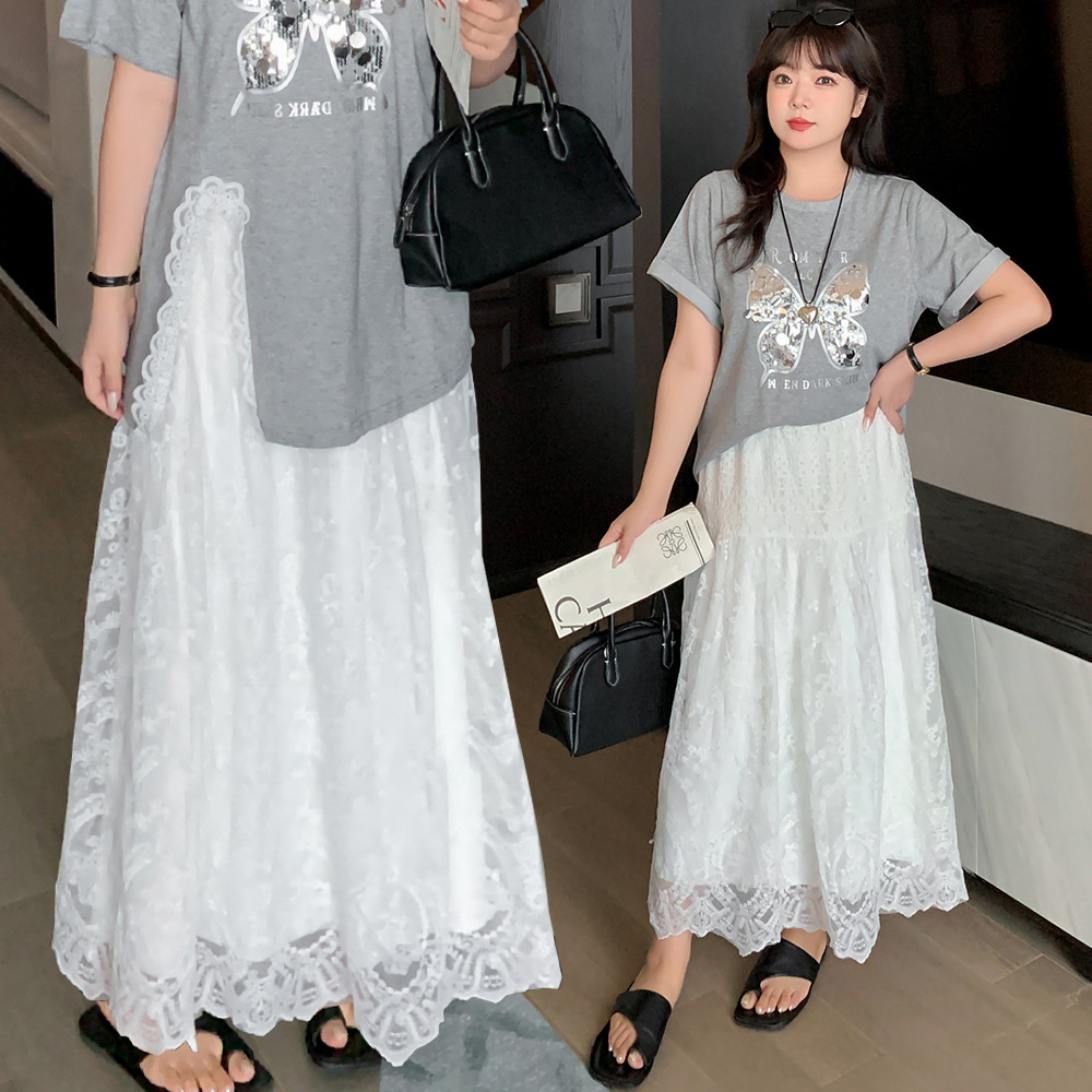 W1193 Xuanchen plus size Summer New 200 Jin French Retro Lace Skirt Age-reducing Long and Short High Waist Skirt