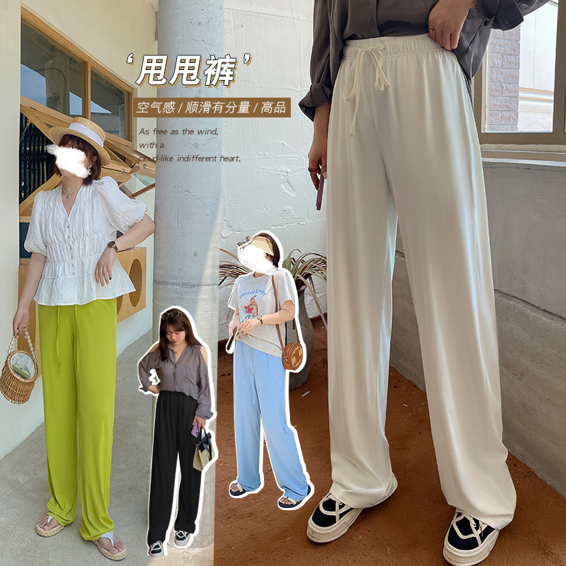 W864 Spring and Summer Plus Obesity mm Design Sag Pants Mop Pants Solid Color Shake Pants Women's Wide Leg Pants Slim-BFD