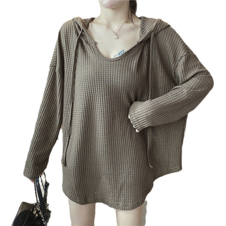 | nameOriginal | Waffle Hong Kong style student sweater women's spring and autumn loose Korean style hooded fried street lazy style bf thin pullover jacket |