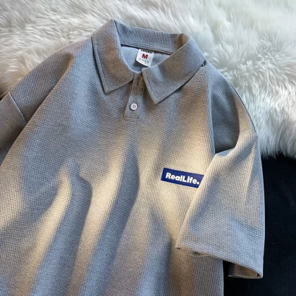 nameOriginal | Waffle short-sleeved summer loose couple polo shirt |