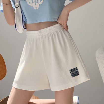 | nameOriginal | Waffle sports shorts women's summer 2023 new Korean style loose high waist home wide leg hot pants outer wear wholesale |