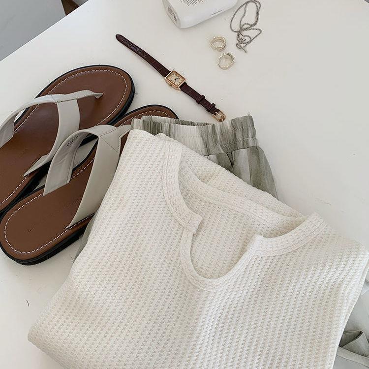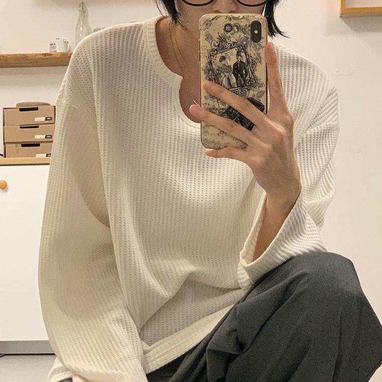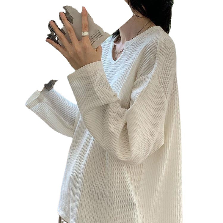 | nameOriginal | Waffler knitted 2023 early autumn new top T-shirt women's design sense U-collar niche thin slim long sleeve wholesale |