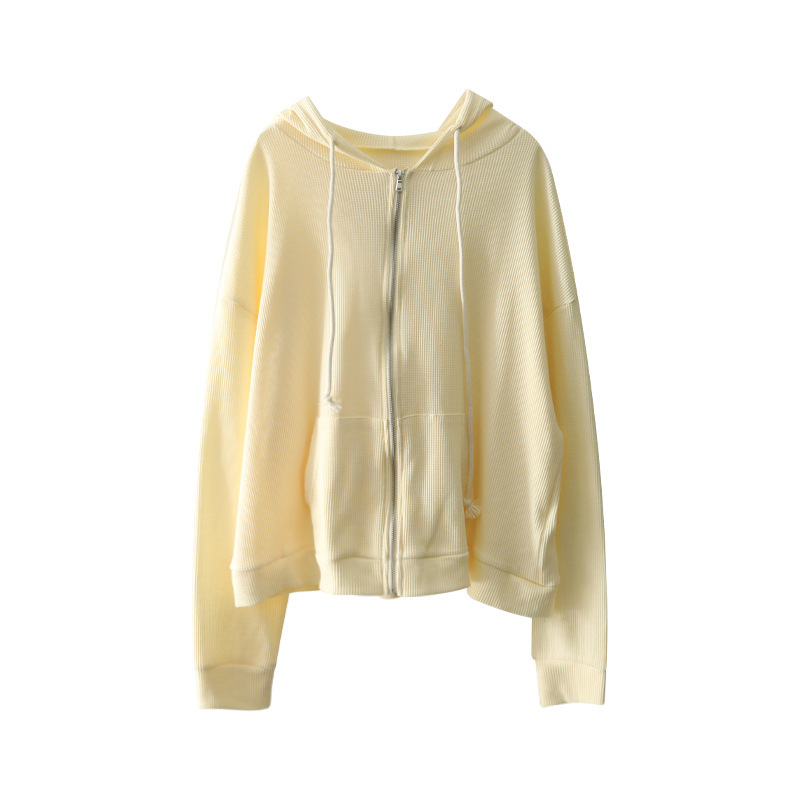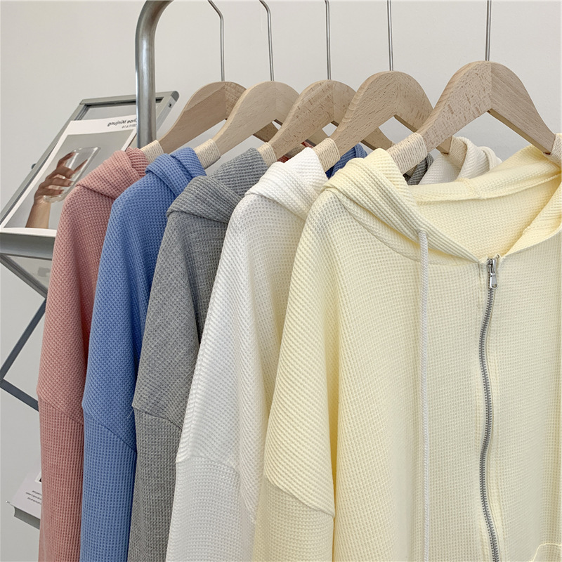 Waffley Cardigan Zipper Sweater Women's 2024 Autumn New Loose Student Lazy Style Hooded Jacket Trendy