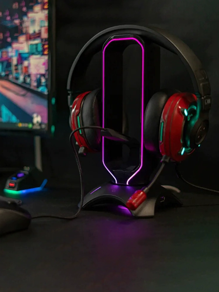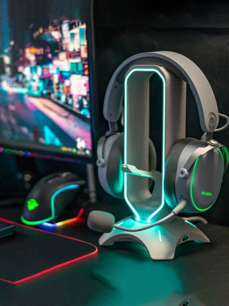 WAIZOWL BG Gaming Headphone Stand Illuminated RGB Gaming Headset Integrated USB Extender