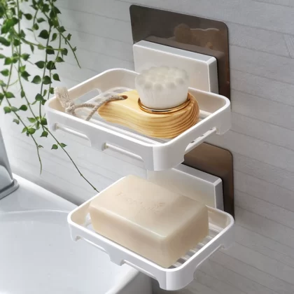 Wall mounted double layer soap dish on the wall for home bathroom