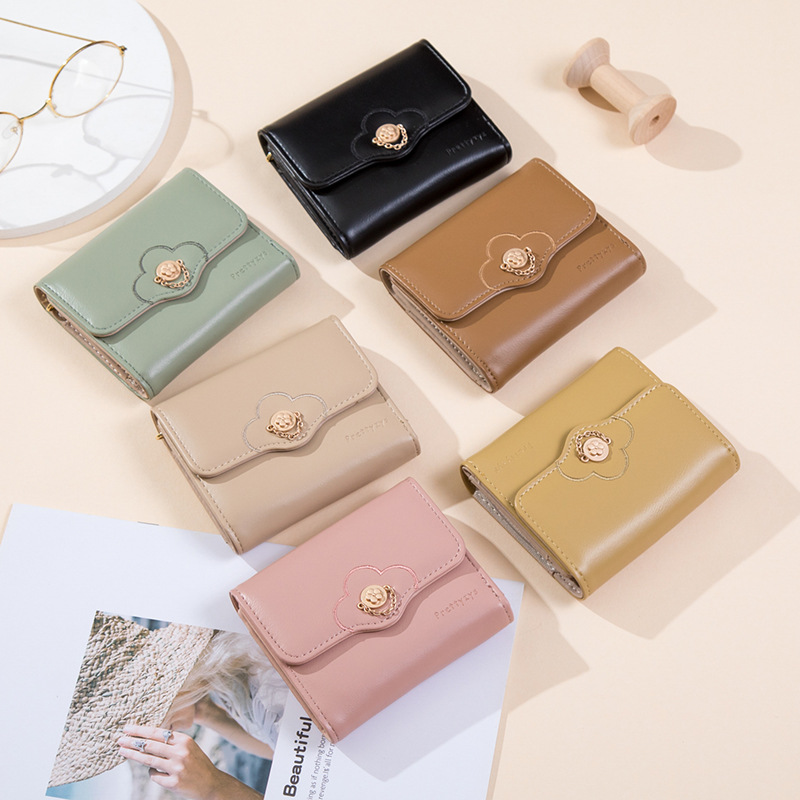 | nameOriginal | Wallet Women's Short Korean Style PU Small Fresh Three-fold Bag Flower Buckle Solid Color Zipper Student Coin Purse Women's Card Bag |
