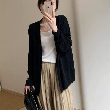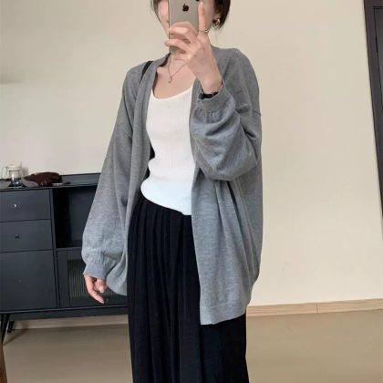 | nameOriginal | Wanmatch wool-like early autumn knitted cardigan summer new mid-length thin slimming loose sun protection coat |