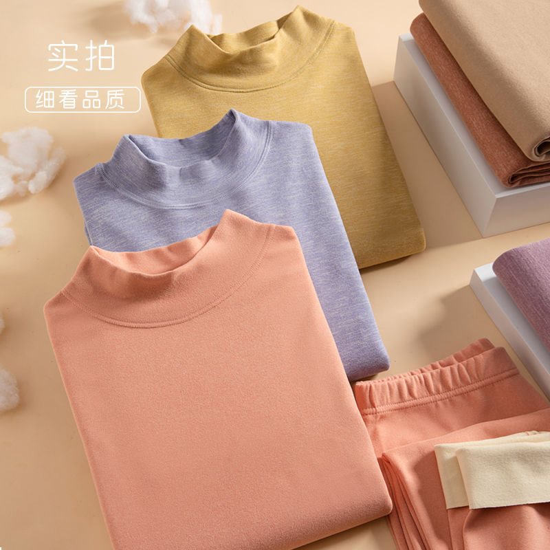 Warm Clothes Set High Neck Thermal Underwear Women's Thickened Fleece-lined Autumn Pants Heating Base Color Cotton Sweater Winter