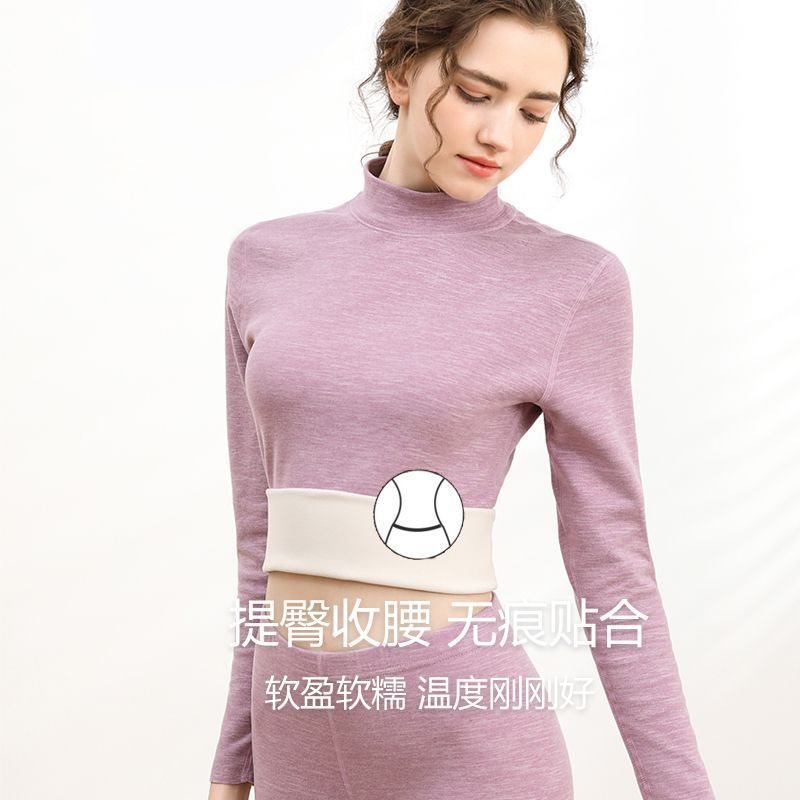 الملابس الدافئة مجموعة عالية الرقبة ملابس اخلية حرارية المرأة سميكة صوف مبطن الخريف السراويل التدفئة قاعدة اللون القطن سترة الشتاء