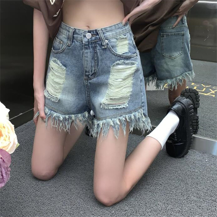 Washed Vintage Jeans Women's Design Sense Niche Ripped Edge Shorts 2024 Summer Hot Pants