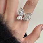| nameOriginal | Watakawa-chan 925 sterling silver light luxury exquisite micro-zirconia diamond frosted bow open ring women's index finger ring ins |
