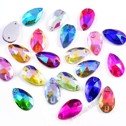 Water drop flat buckle crystal glass flat bottom hand sewing Diamond diy jewelry accessories wedding clothing accessories color electroplating Diamond