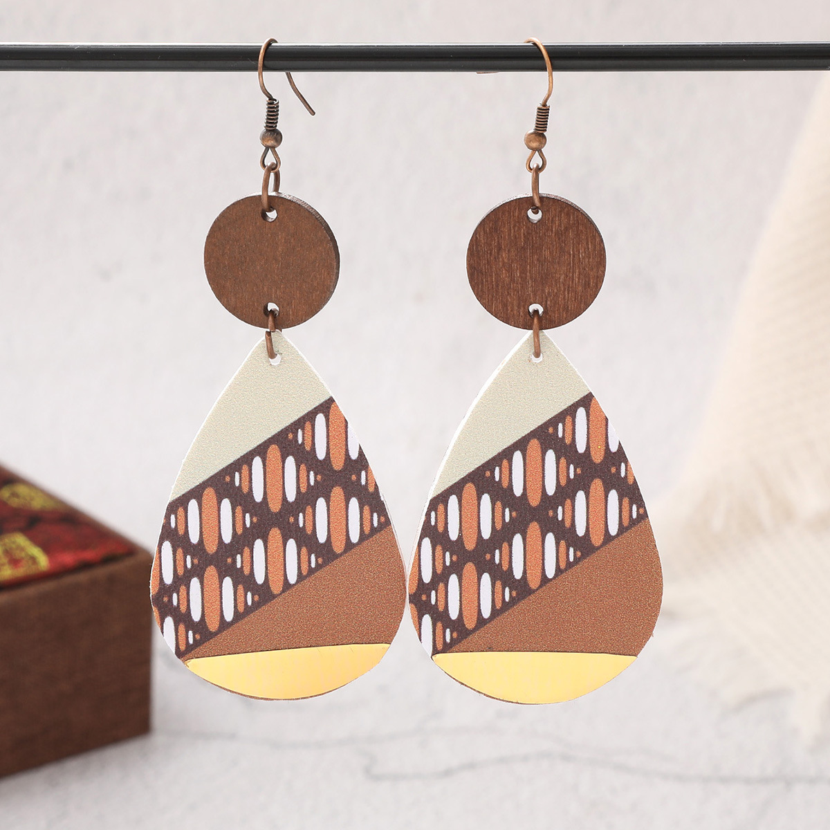 Water drop leather wood chip earrings retro style Jewelry earrings wooden color matching cross-border European and American female Amazon