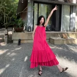 | nameOriginal | Wear a resort style white layered sleeveless dress |