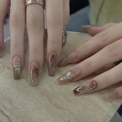 Wear Manicure Caramel Cream Amber Gradient Sequin Manicure