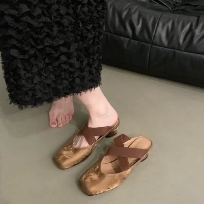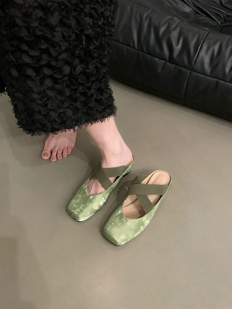 | nameOriginal | Wear summer ballet thick heel square toe half slippers |