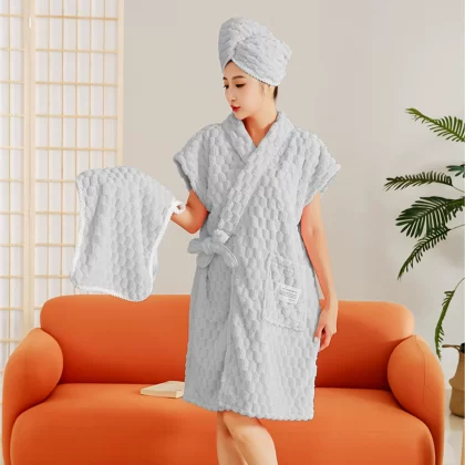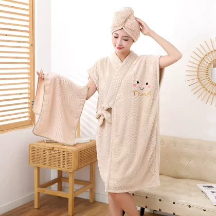 | nameOriginal | Wearable home use pure cotton towel dry hair cap bathrobe |