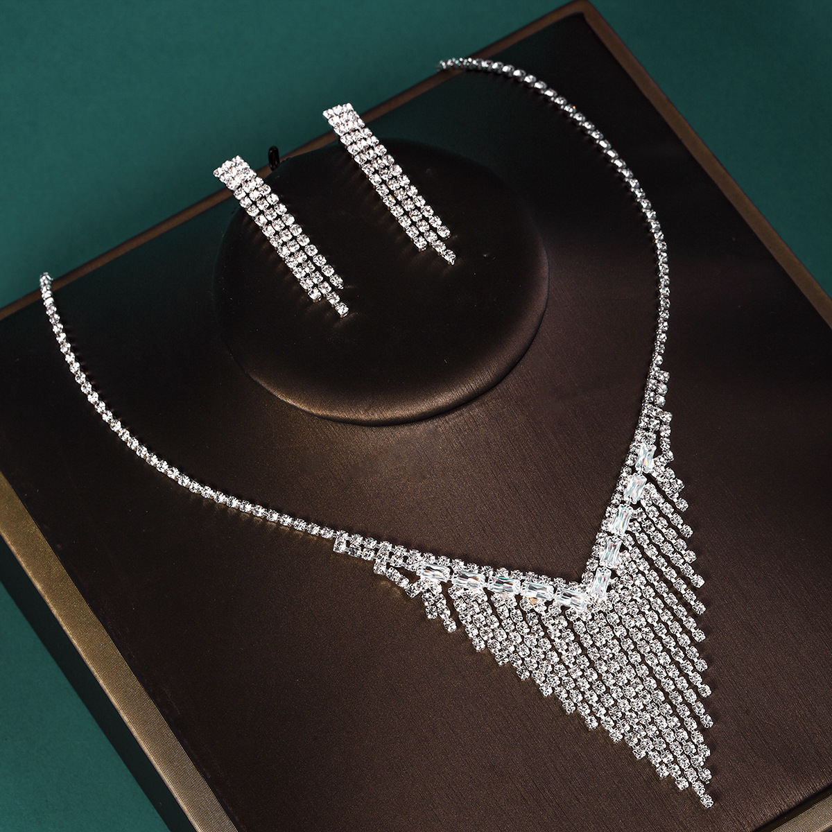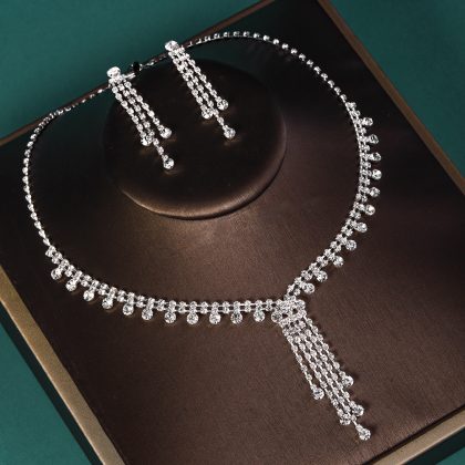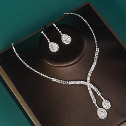 | nameOriginal | Wedding Jewelry Two-Piece Set Rhinestone Earrings Necklace ins Niche Design Wedding Jewelry Luxury Bridal Set Chain |