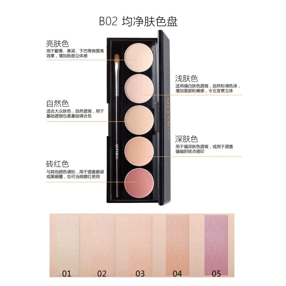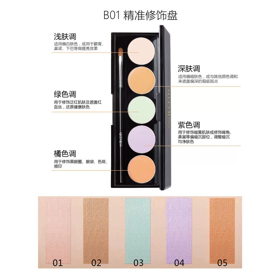 | nameOriginal | Weimeixiu five-color concealer conceals acne marks, spots, repairs, eye bags, dark circles, purple green skin tone, partial |