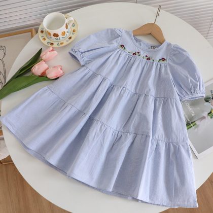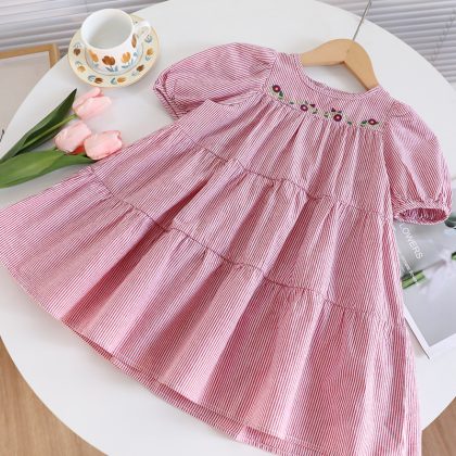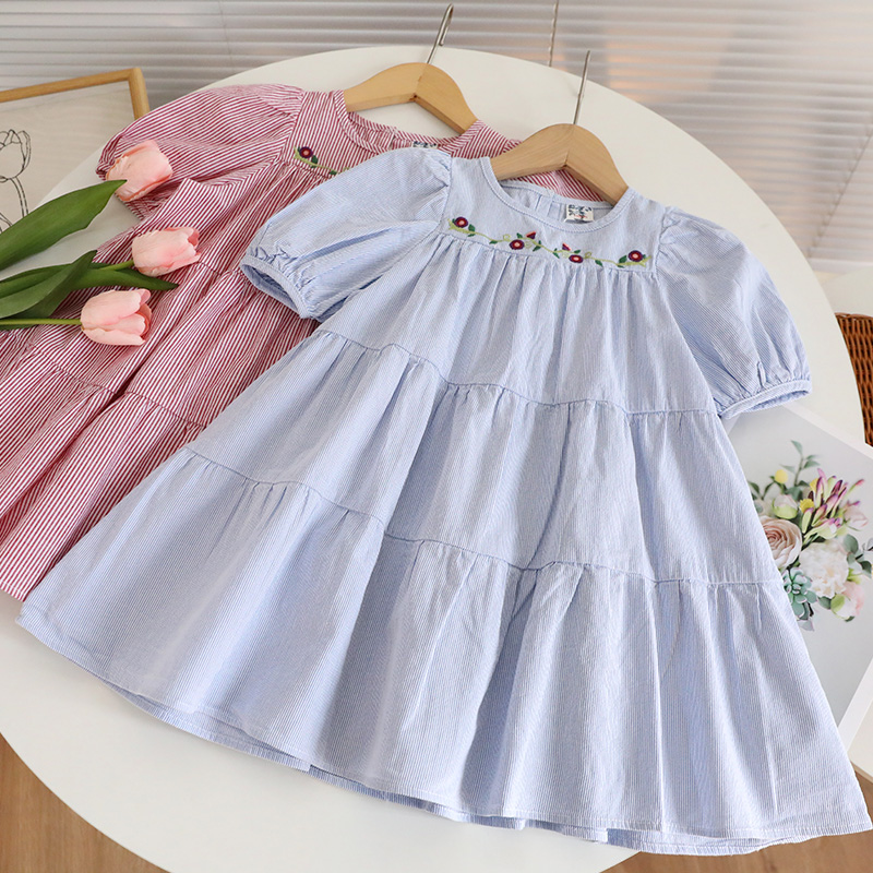 | nameOriginal | Western style summer 2024 new girls short sleeve dress fresh sweet striped children's girl cotton princess dress |