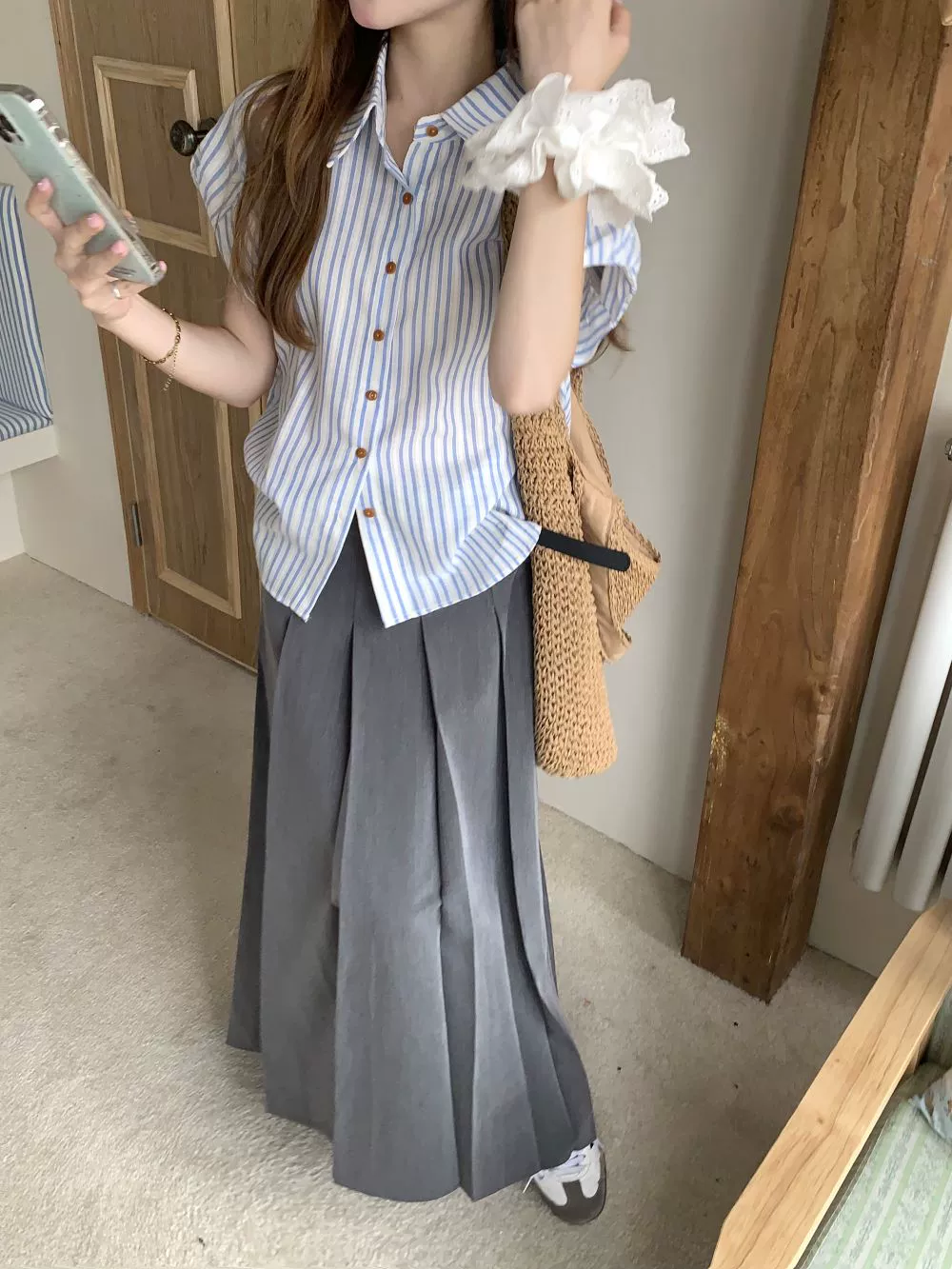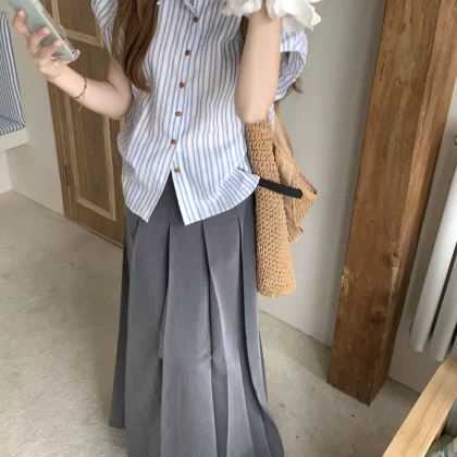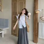 Western style women's summer pleated skirt two-piece shirt set
