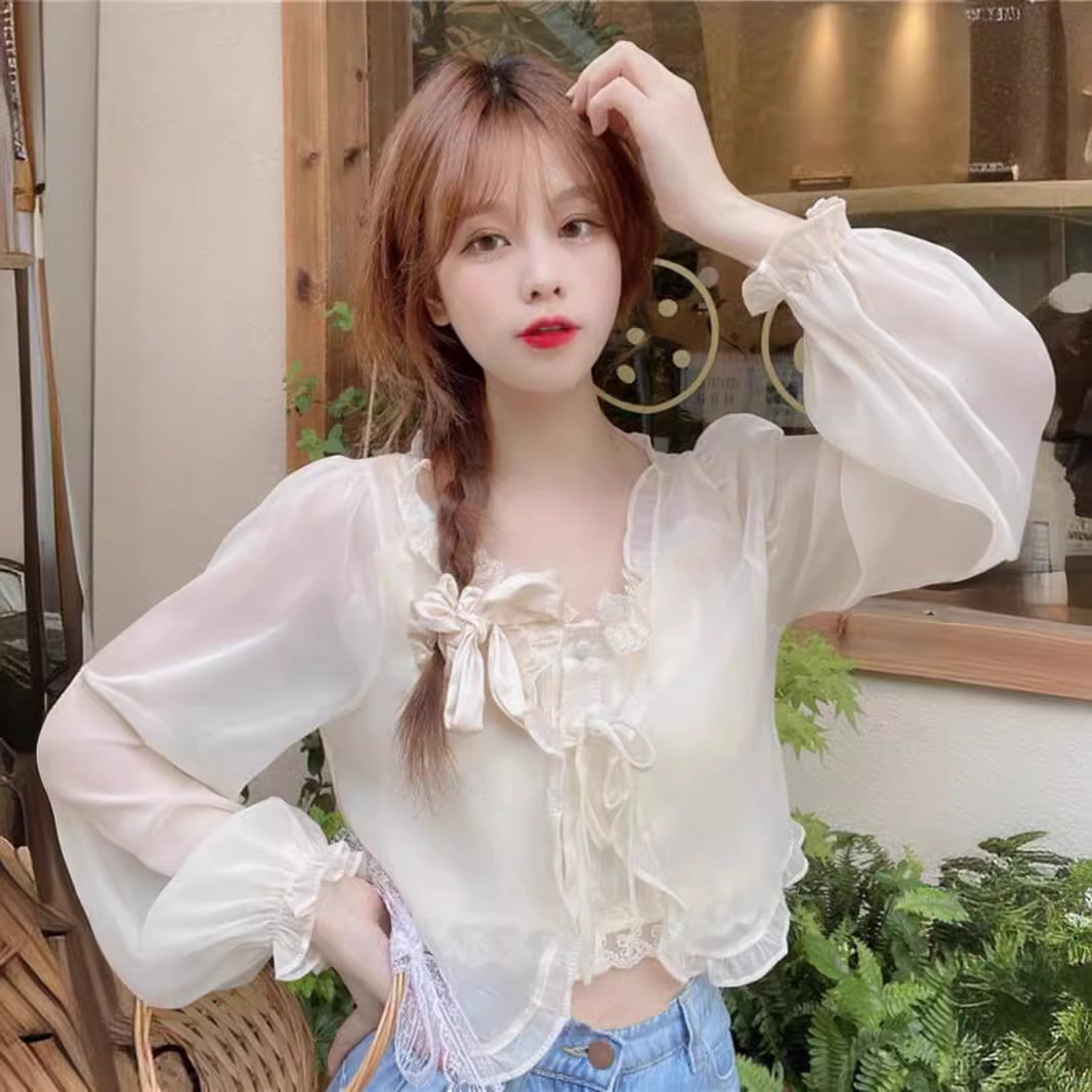 | nameOriginal | White Chiffon Outer Small Cardigan Summer Women's New Thin Blouse with Suspender Skirt Coat Shawl Top |