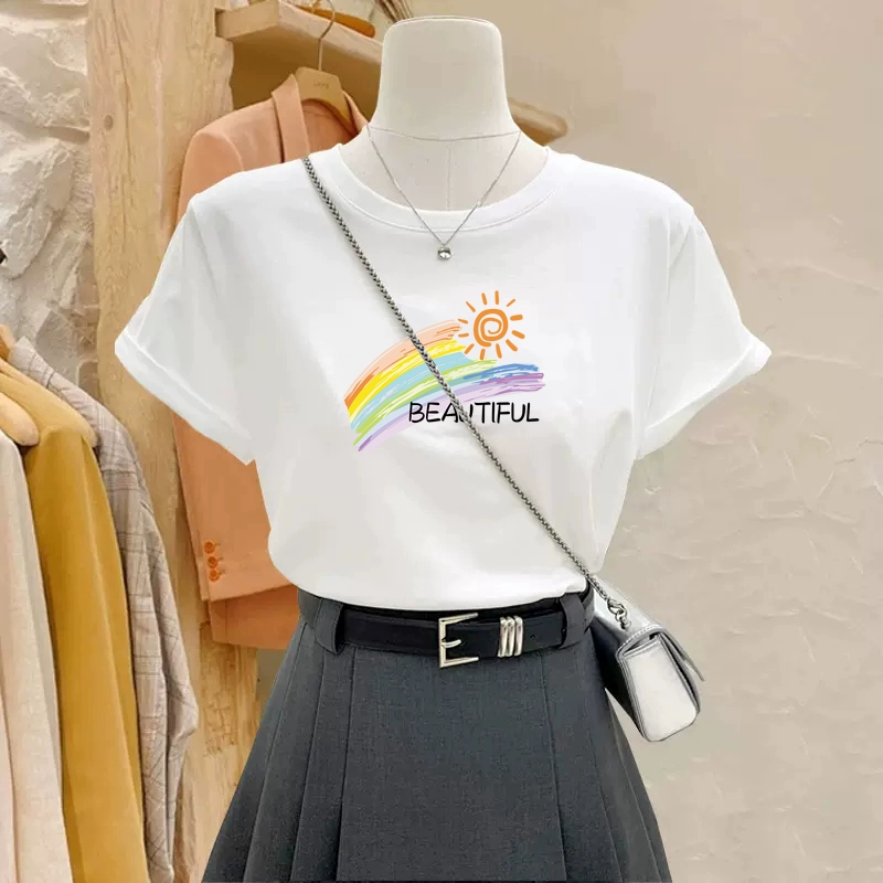 | nameOriginal | White cotton right shoulder round neck college style short-sleeved T-shirt |