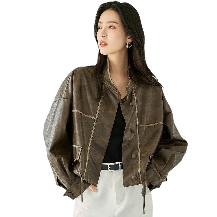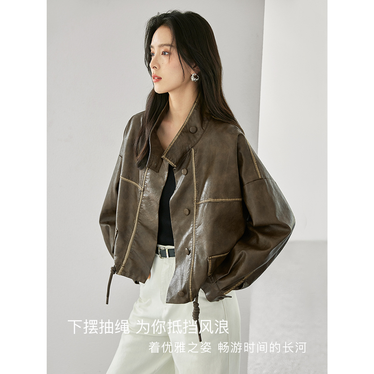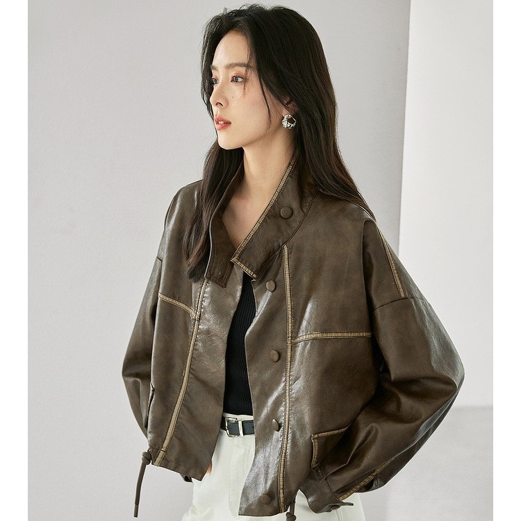 | nameOriginal | White Elegant Collar Short Coat Coat Women's 2024 Autumn New Drawstring High-grade Cord Leather Jacket |