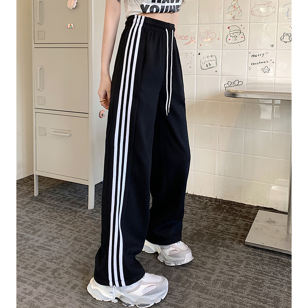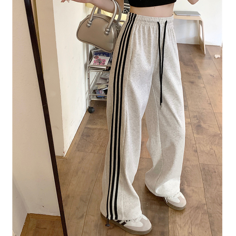 White Grey Striped Sweatpants Women's Spring and Autumn New Arrival Wide Leg Straight Leg Pants Casual Loose Sports Pants Trousers