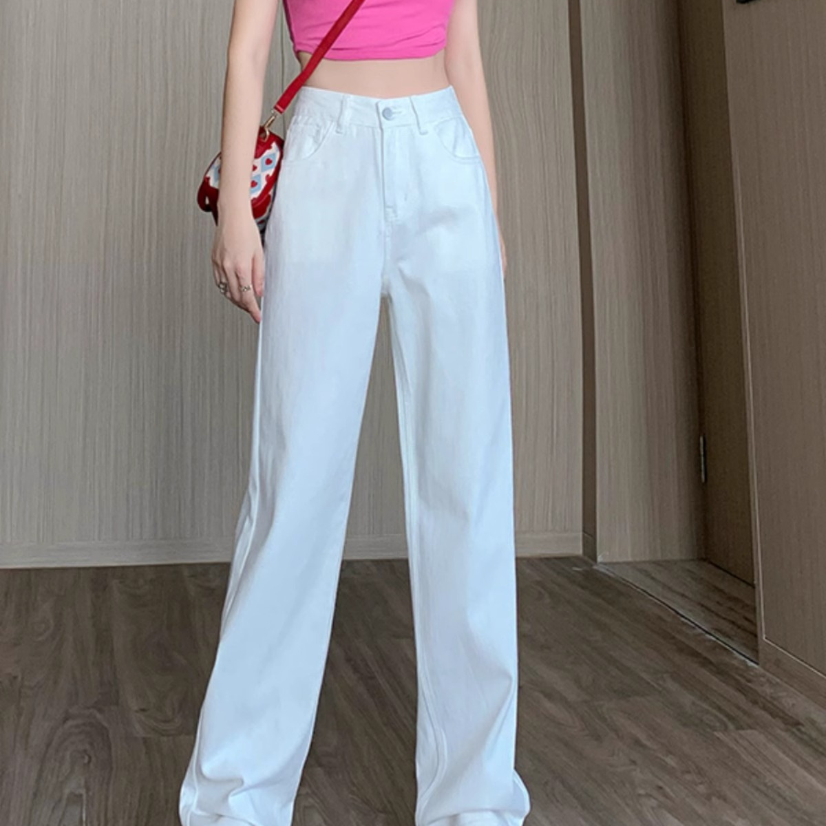 | nameOriginal | White High Waist Jeans Women's Summer Thin American Style High Street Loose Slim Look Small plus size Straight Leg Wide Leg Pants |