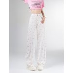 White Jeans Women's Floral Design High Waist Narrow Wide Leg Pants Straight Trousers Small 2024 New