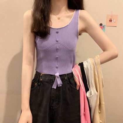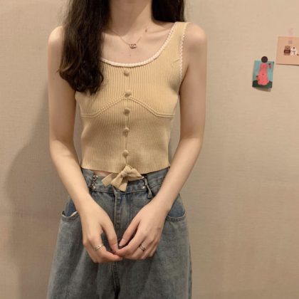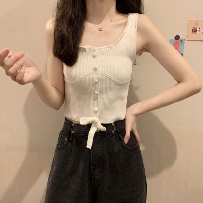 | nameOriginal | White Knitted Vest Sling Women's Inner 2024 New Summer Slim-fit Design Sense Niche Western Style Sleeveless Top |