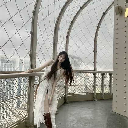 | nameOriginal | White lace suspender dress for women spring 2024 new style single-breasted hollow waist slit long skirt |