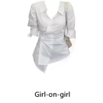 White Lapel Short Sleeve Shirt Women's Summer Slim Fit Irregular Design Trendy Niche Shirt