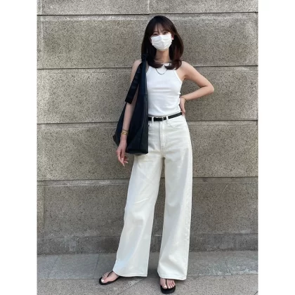 | nameOriginal | White nine-point thin high-waisted straight-leg wide-leg jeans |