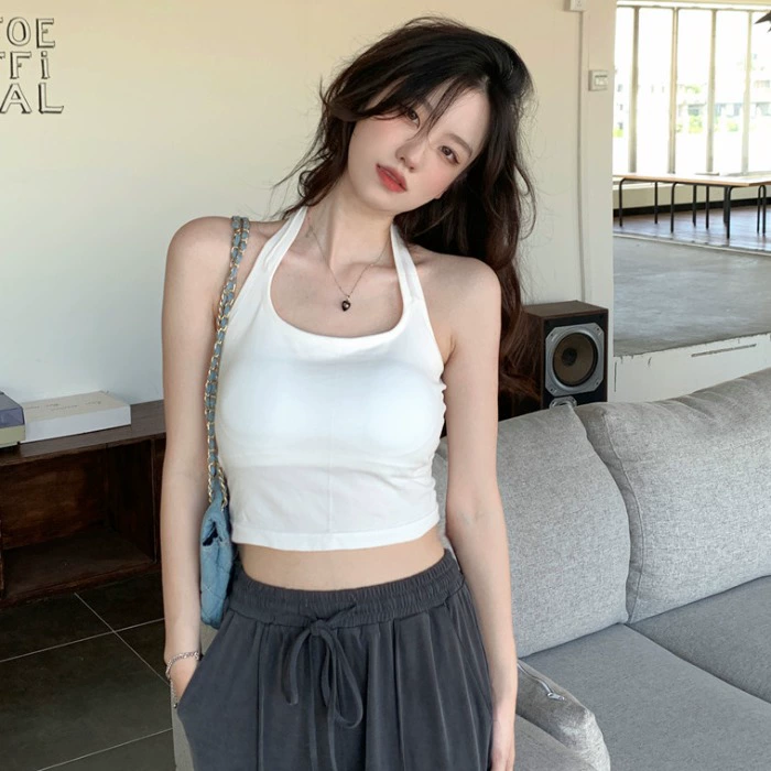 | nameOriginal | White one-piece halterneck camisole without chest pad |