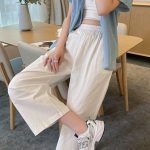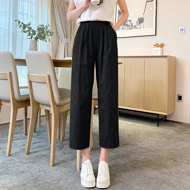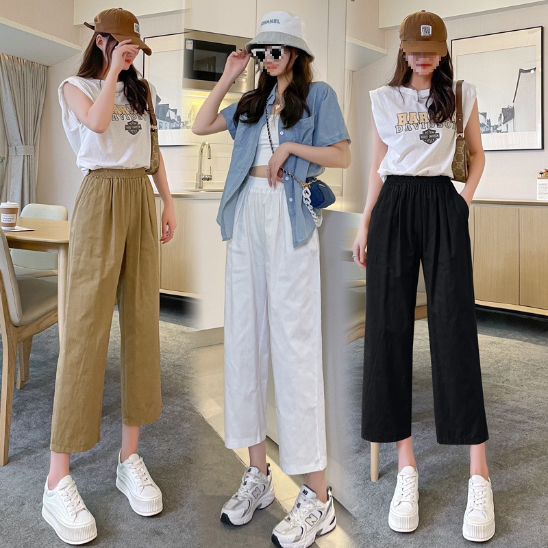 السراويل البيضاء المرأة الصيف رقيقة صغيرة ثماني نقاط مستقيم الساق السراويل فضفاضة التخسيس عالية الخصر دانج تسع نقاط واسعة الساق السراويل
