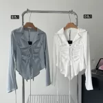 | nameOriginal | White satin early autumn V-neck waist slimming shirt |