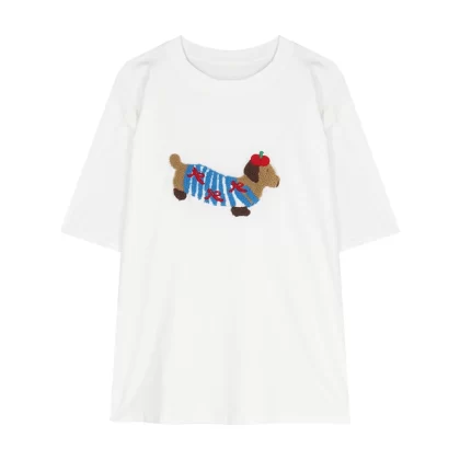 | nameOriginal | White short sleeve loose casual round neck puppy embroidery |