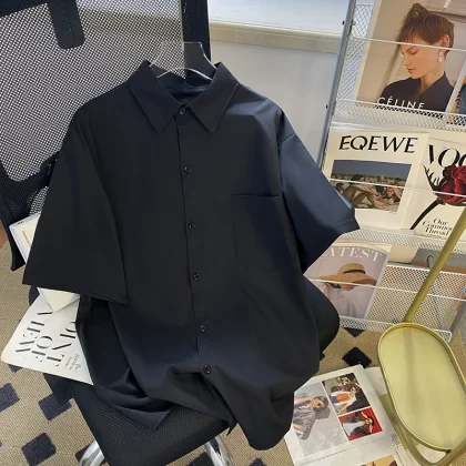 | nameOriginal | White short-sleeved cardigan shirt for men and women basic ice silk shirt trendy summer casual workwear outer wear three-quarter sleeves |